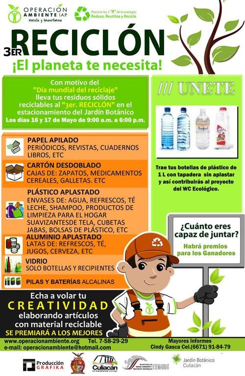 Participa en el Reciclón 2011 de Culiacán 25 abril 2011 por CuliacanBlogs Compartir: Comparte en Facebook (Se abre en una ventana nueva) Facebook Compartir en X (Se abre en una ventana nueva) X Imprimir (Se abre en una ventana nueva) Imprimir