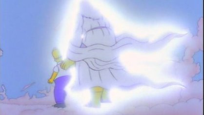 Tampoco olvida que el marido de Marge ronca durante los sermones del reverendo Lovejoy, pero agradece que rece todos los días antes de comer y que, a su manera, crea en el mas allá.